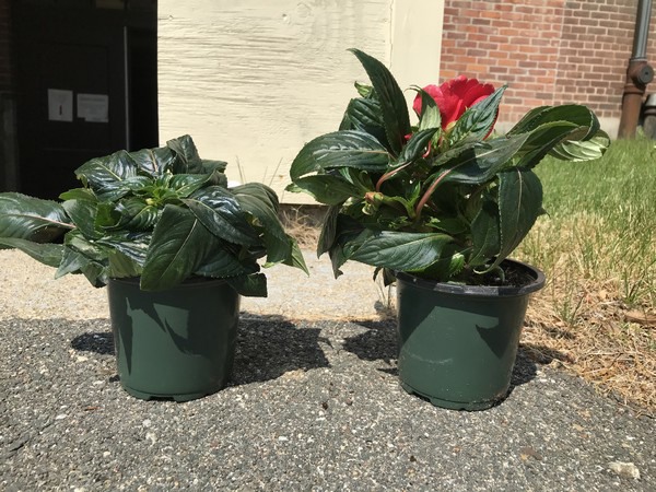 Two New Guinea Impatiens were recently submitted to the UMass Extension Plant Diagnostic Lab. While the growth of one plant appeared normal, the second had significantly shortened internodes, tight, bunchy growth, and leaves of diminished size. The plant appeared otherwise healthy. Suspected causes were misapplication of a growth regulator (PGR), or mite infestation. Feeding by broad mites may produce similar symptoms; however, no mites or insect pests were observed on dissection of buds and meristems.