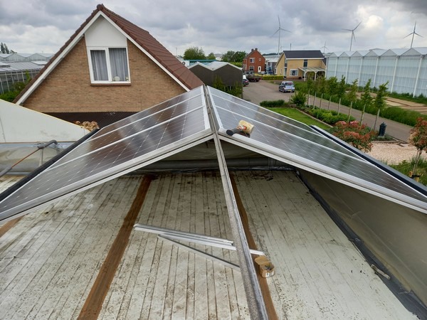 The first project was installed at the end of May. In total, for 2.5 days, 3 people took 186 panels onto the greenhouse roof in Maasdijk to install.