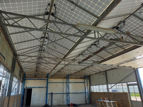 It is even possible to apply glass/glass-solar panels. “These are semi-transparent, which makes it less warm during summer but still allows some light to enter the greenhouse if under the panels you would, for instance, have a production room.”