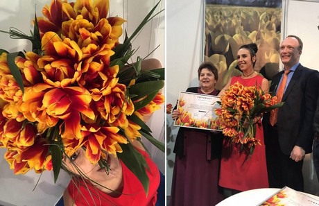 Jamala, Ukrainian winner of the 2016 edition of the Eurovision Song Contest, 'baptizes' the new StoKolex tulip.