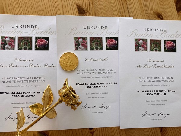 On June 23, 2021, a floribunda rose was awarded the internationally honorary prize "Golden Rose of Baden-Baden". She bears the name Royal Estelle Plant 'n' Relax and comes from the rose breeder Rosa Eskelund from Roses Forever Denmark. The rose is named after the Swedish princess Estelle, daughter of Crown Princess Victoria.