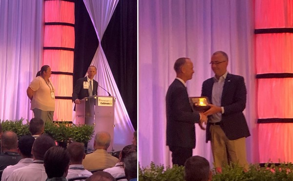 Besides the show and conferences, AmericanHort also organized an event where new board members were recognized. On the left: Tom Hughes recognizes Immediate Past Chairwoman Susie Raker-Zimmerman. New Board Chairman Cole Mangum from Bell Nursery recognizes now Immediate Past Chairman Tom Hughes.