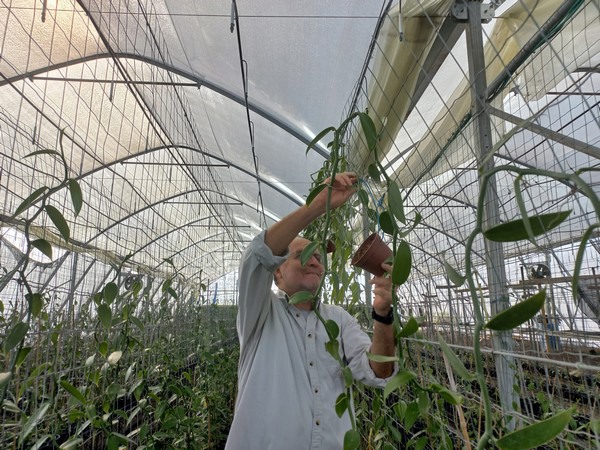Motti Sharon in one of the vanilla greenhouses in Israel