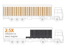 “One of the biggest advantages of these pallets is that they are nestable when empty. With standard pallets, you fit 528 in a truck, but with the NeRa pallet, you fit 1221 in a truck, adding up to 2.5 times more capacity.