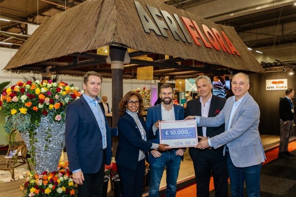 Last week, at the Tradefair in Aalsmeer, AfriFlora received a cheque for €10,000 from Marcel Zandvliet (chairman of the Dutch Flower Foundation), in the presence of Hans van Ree (CEO, The Floral Connection) and Stefan Verhoeff (General Director, Van Dijk Flora) on behalf of the Dutch Flower Foundation, in favor of the Sher hospital in Ziway, Ethiopia. On behalf of Sher Ethiopia, Mrs. Lulit Tadele Demissie (Director) received the cheque.