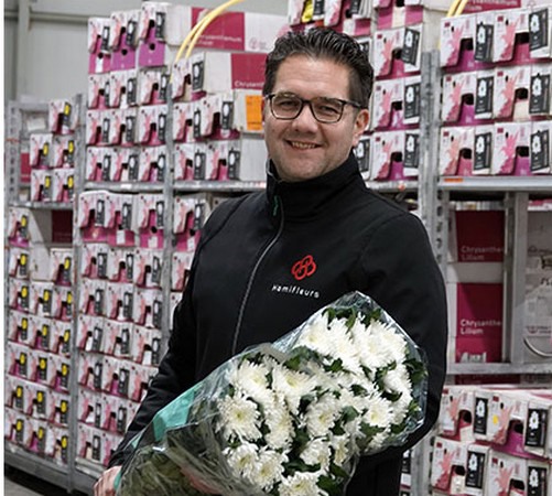 One of those 500 employees is Patrick Rapmund, who, together with his colleague Jan Koolhaas, works every day to purchase the correct amount of the desired chrysanthemum varieties. Patrick focuses on the clock of Naaldwijk, Jan focuses more on Aalsmeer. Nevertheless, buying the chrysanthemums at OZ-Hami can be called a team sport. While buying the flowers at seperate locations, both men are in continuous communication. Madibas, santinis, sprays, and also disbudded chrysanthemums: it is all purchased at the touch of one button. However, we only see a part of the purchased chrysanthemums being purchased here, since a large part of the chrysanthemums are purchased directly from the grower. Via the auction or directly from the grower: it should be clear that OZ-Hami is a major player and that team play is key.