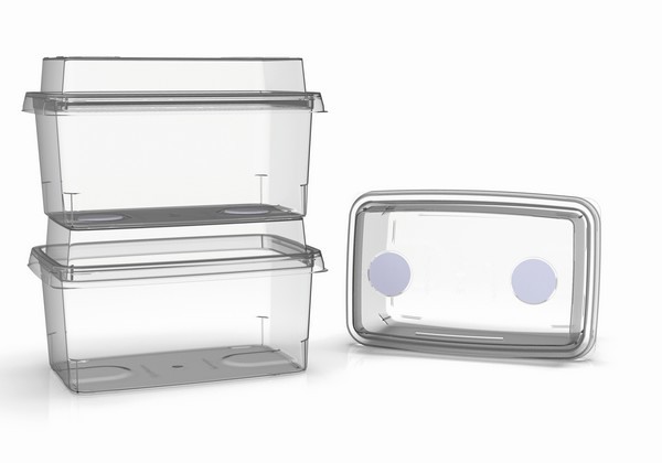 The inVenti+ container is currently available at a standard height of 80 mm and will also be available in heights of 50, 90, and 120 mm in the future. Stacking knobs ensure that the in-vitro containers are held securely in place during storage and during transport. Due to its low weight compared to glass containers and its angular design with external dimensions of 9.6 cm wide x 14.6 cm long, the plant cultivation container is designed for optimal space utilization, e.g. of standard cartons or boxes measuring 40 x 60 cm or 80 x 120 cm, and is adapted for shipping on Euro or IC pallets. inVenti+ is also ideally suited for air freight transport.