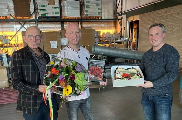 From left to right: Henny Zwinkels, chairman national poinsettia committee, John Jansen of Jansen Hibiscus Nursery, and Joost Rabbering, Selecta-one representative.