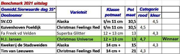 Nursery Jansen Hibiscus has won the Glastuinbouw Nederland Quality Award Poinsettia 2021 with the Selecta-one variety Christmas Universe. In 2020 the winner was nursery Nouws. The number of entries was 56 for 2021 and 67 in 2020.