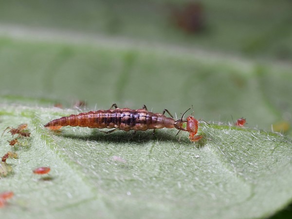 Both larvae and adults of Micromus prey on all the major aphid species commonly found vegetable, soft fruit, medicinal cannabis and ornamental crops. To maximise control of this pest, IPM programmes need a combination of generalist predators, such as Micromus, and species-specific parasitoids.