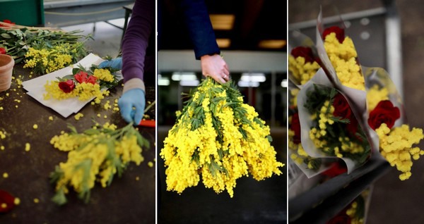 In many countries International Women's Day is being celebrated by giving and receiving all kinds of flowers. However, in Italy, this holiday, also called Festa della Donna, is traditionally celebrated with mimosa. Men give the women in their lives a bunch of mimosa or a bouquet of flowers that should include mimosa. At Flora Toscana's bouquet making department, it has been very busy in order to prepare and supply all supermarkets. All in all, they are satisfied.