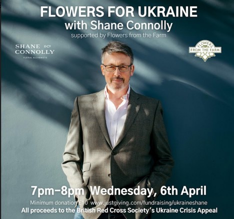 Shane Connolly has set up a just giving page at https://www.justgiving.com/fundraising/ukraineshane and is asking for a minimum donation of £10 to raise as much money as possible for the Appeal. All donors will be invited to attend the live online ‘Flowers for Ukraine’ event and will afterwards be able to access a video recording of the floral demonstration. All proceeds from the event will be donated directly to the British Red Cross Society’s Ukraine Crisis Appeal.