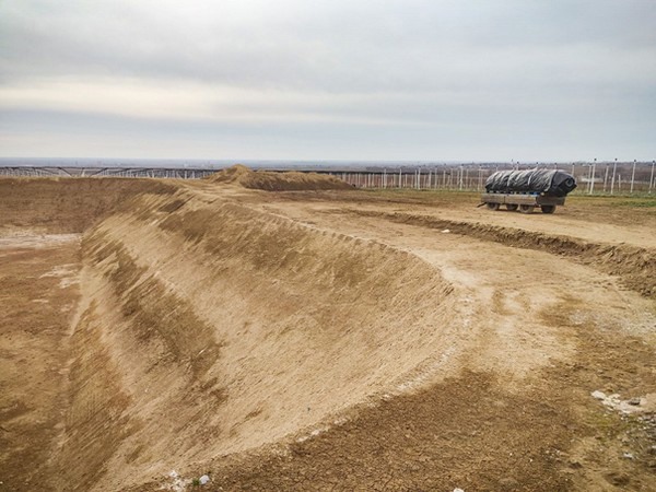 A dug basin for a blueberry grower in Serbia. The film is here ready to be installed.
