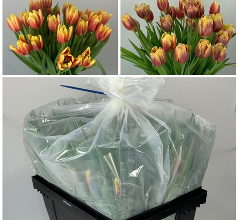 PerfoTec is proud to announce that a remarkable and successful trial has been conducted. The goal has been reached: there is a significant difference between the tulips packed in PerfoTec LinerBags and the control group (conventional packed tulips). Tulips packed in PerfoTec LinerBags without water for 28 days still meet all the fresh flower requirements and guarantee +7 days of vase life for the consumer. The control group didn’t develop and the flowers stayed closed and decolored during vase life as the result of dehydration and ripening of the tulips during storage.
