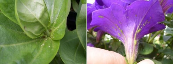 It is not possible to use action thresholds to manage aphid populations. If winged aphids are found on sticky cards, then populations are usually already high. As a result, plant inspections are the only reliable way to scout for aphids. To simplify scouting efforts, attempt to group aphid-susceptible plant species together (e.g., chrysanthemum, sunflower, gazania, portulaca, pepper, calibrachoa, petunia, and others).