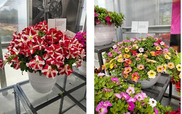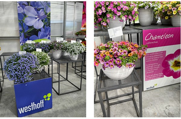 For our most popular series, we also had nice displays showing some of the new breeding. The Chameleon series of Calibrachoa was highlighted, not by the number of new varieties (just one this year: Chameleon Pink Splash), but by how many varieties we dropped, which comes to 6 fewer next year that we will be offering. As much fun as it is to bring new breeding to market, Westhoff is trying to be diligent in removing older varieties that no longer match up to the series in terms of performance.