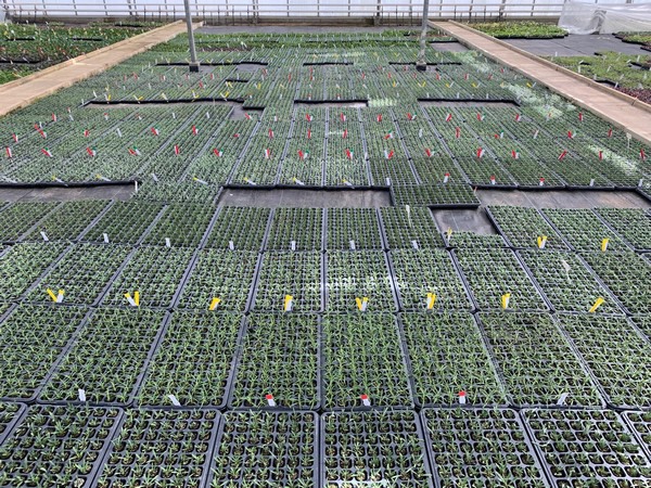 Now, new crops are coming up from the tissue culture. “200,000 Heuchera, including Frilly which is being launched at Chelsea after a 1-year delay. Then, 30,000 Agapanthus, 30,000 Cordyline, an also Geranium Rozanne and Eryngium Big Blue, and Neptunes Gold, which are both top sellers!”