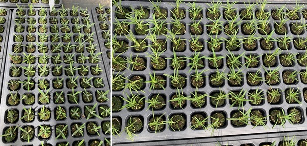 Close ups of Lavender and Rosemary in their 84 cell Fertil plug
