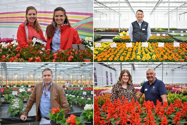 Suzanne Kooi and Eva van der Cruijsen of PanAmerican Seed; Area Sales Manager Japan at Benary, Naoto Takamura; Chantal Groot, back office, and Marco Laan, Product Manager at Hem Genetics; and Dominic Lacay, director FloraNova.