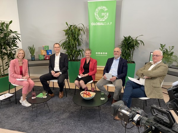 From left to right: Moderator Bianca Thomas, Managing Directors Dr. Kristian Moeller and Dr. Elmé Coetzer-Boersma, Vice Chairman of the GLOBALG.A.P. Advisory Board Dr. Leon Mol and Chairman of the GLOBALG.A.P. Advisory Board Guy Callebaut.