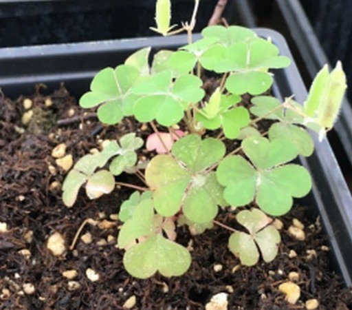 Seeds: The seeds are very tiny, teardrop-shaped, and brown. A single oxalis plant can produce up to 5,000 seeds per year and have an almost 100 percent germination rate immediately after dispersal (Holt and Elmore, 1985). Oxalis seeds require light for germination, and the optimum temperature requirement for germination ranges from 50°F to 84°F; however, seeds have a broader germination temperature range when produced in warmer months than seeds produced during cooler months.