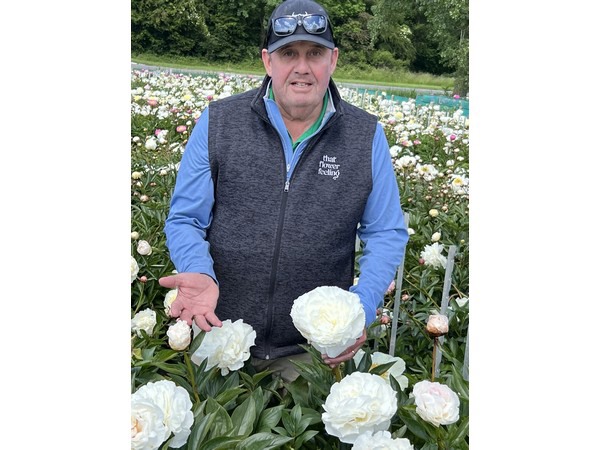 Joost Bongaerts in between the peonies at the peony field of Greenworks Peony Trial Garden last week.