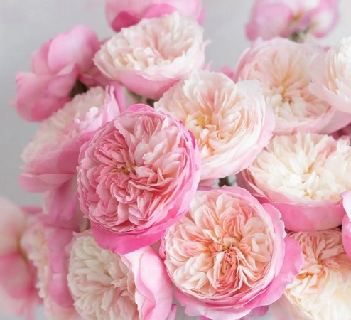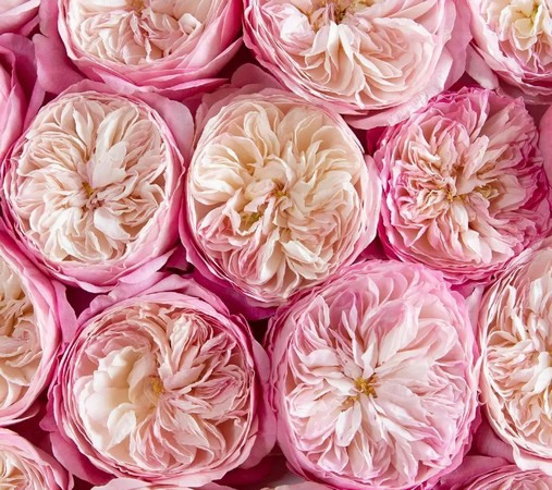 Constance has a Cinderella ball gown shape with layers of delicate petals that ombré from a heart of cream to rosy marshmallow pink. Each rose reveals herself quite differently, some open to the palest cream and blush pink, others to a deeper raspberry hue.