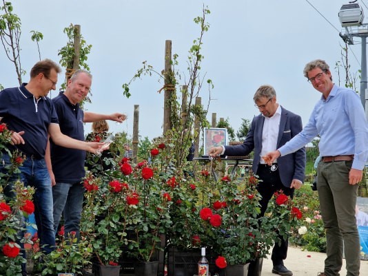 The garden rose can be seen at Floriade, where the rose was christened on Sunday 5 June in the garden of the Culture Group Roses. This naming ceremony was performed by Jaap Dijkman, director of the Stem Cell Donor Bank, Alex Spek of Jan Spek Rozen, Jaap Smit, a dendrologist (tree expert) of Floriade, and Patrick Wijnhoven himself. The red garden rose is available from rose nursery De Wilde, is suitable for planting in the ground or in a pot and flowers from June until far into the autumn.