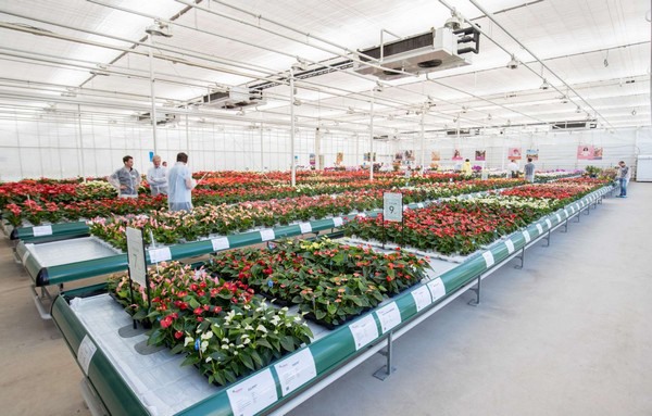 The many different colors and varieties of Anthurium and Phalaenopsis pot plants in the show greenhouse provided ample scope for conversation, especially when it came to future assortments.