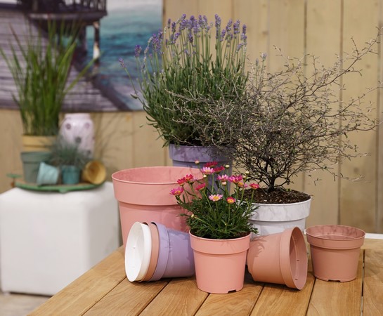 The catalog now only features sustainable pots, which is why the R&R pots are made of 100% recycled PP material. Following last year, this year's style trends have been translated into new trending colors for the Thomsen injection molding pots. You can view them on page 40. In addition, Modiform now offers exclusively recyclable packs made from the base material PET transparent green or PS cool grey. These plastics come from discarded green PET bottles and fridges, respectively. This means customers automatically make a sustainable choice, and Modiform automatically closes the material loop – together with its customers.