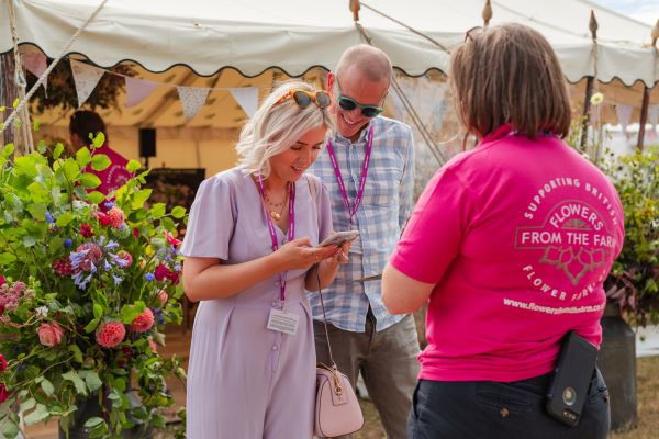 Ambassadors invited visitors to make their floral buttonhole or mini posy corsage tied with beautiful Flowers from the Farm ribbon.