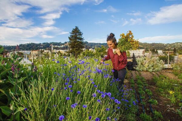 At the time, Bluma was based in Sunol, about 30 miles inland from the East Bay region. Still, soon after they published the story, Bluma moved back into the city to its current location, a Berkeley rooftop where Joanna and her team produce hyperlocal, certified-organic flowers. Here’s a bit more about Joanna: