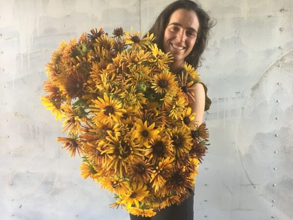 She recorded the interview from her farm, six stories high against a brilliant summer sky. Joanna’s focus on community and on sharing Bluma Flower Farm with others. She writes: “For me, farming is a way of life, a re-connection to the circle of life. I always wanted to work with my hands, be outside, and be of service to people and the planet. I believe enjoying fresh fruits, vegetables and flowers is a fundamental human right, and I hope my farm can encourage others to grow plants and flowers too.“