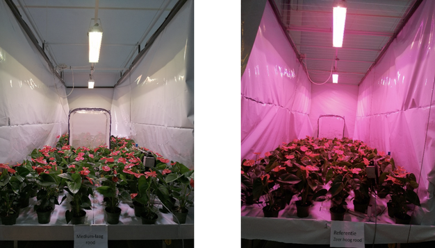 The Greenhouse2030 is the first operation with full LED in high intensity for potanthurium. The experience of the first two winters showed that the chosen LED spectrum might not be the best for this crop as it affects the plant shape by inducing flower stem elongation. Also, questions arose about the ideal day length in winter. Therefore, researcher Nieves Garcia Victoria has recently conducted a test on the ideal light spectra for growing pot anthurium, one of the most important pot plant crops in the Netherlands.