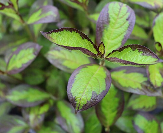 - Vinho Verde Weigela (Weigela florida ‘Smnwfbgv’ PPAF), introduced by Spring Meadow Nursery. It was discovered as a variegated sport on a seedling whose parents were golden ‘Briant’s Rubidor’ and burgundy ‘Naomi Campbell.’ It has lime green leaves set off with a bold, black margin. A light crop of red-pink flowers appears in late spring, but the foliage is the main draw. The plant is available in 2-gallon containers from Farwest exhibitor Walla Walla Nursery Co. (Booth #8051).