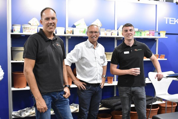 At the Teku Pöppelman stand, Rob Verkoelen and Stam Verwaaij, both from Vitelia Agroculture, came to take a look at Pieter van Staalduine.