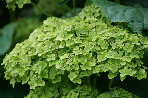 Invincibelle Sublime Hydrangea arborescens is a full-sized smooth hydrangea with cloud-like deep, tourmaline-green mophead flowers on sturdy stems. Very dark green foliage sets off the lively green of the blooms. Bred by Tim Wood, the hydrangea is 3.5-5’ tall and wide, and hardy in USDA zones 3-9.
