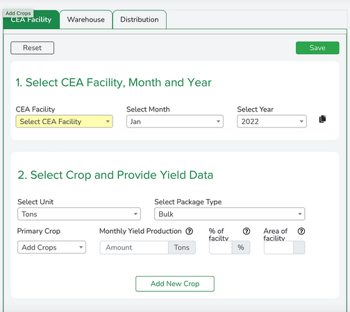 This screenshot of the app shows part of a screen where a user can start entering data for a given facility.