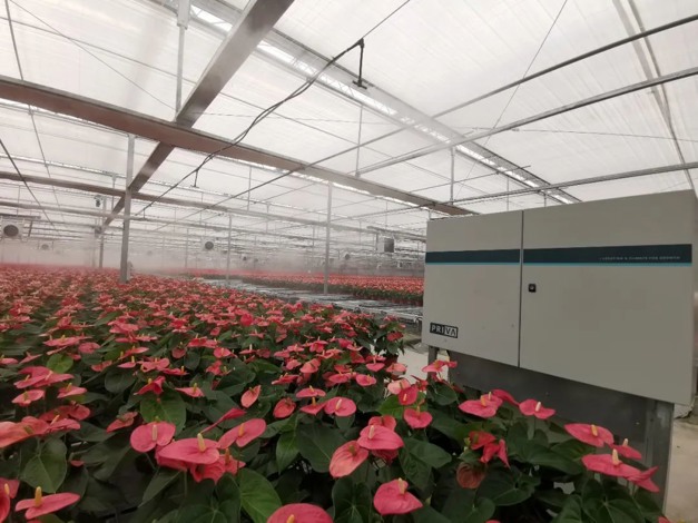 Modern Horticultural Science and Technology Industry Demonstration Park in Taizhou City, Jiangsu Province, aims to focus on research and technology in the flower and seed industry and display the integration of agriculture, culture, and tourism. Taizhou Suzhong Horticulture Co., Ltd. is responsible for the construction, and Priva's partner, Jiangsu Chunqiu Agricultural Facilities Co., Ltd., is responsible for the implementation and installation of automatic energy control and irrigation in the greenhouse. The demonstration park has a 210,000-square-meter smart greenhouse, which can provide the most suitable environment for all plants throughout the year. Currently, the daily sales of anthurium are about 3,000 pots, and about 90,000 pots are produced every month.