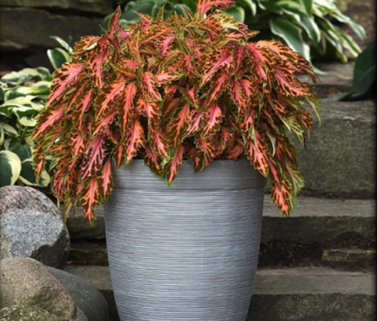 The first seed coleus to win the coveted AAS Winner designation! Coral Candy features unique, multicolored foliage on a uniformly compact plant. This new plant form has narrow, serrated leaves that gracefully drape down the mounded plants. AAS Judges noted that this variety holds its color well, even when grown in full sun. This variety was entered into and trialed in the container trial meaning it’s perfect for small space gardens. Late in the season, it was observed that Coral Candy held up nicely in the fall and had almost no flowers even late in season. Just 3 seeds will produce enough substance to fill a 14-16” container.