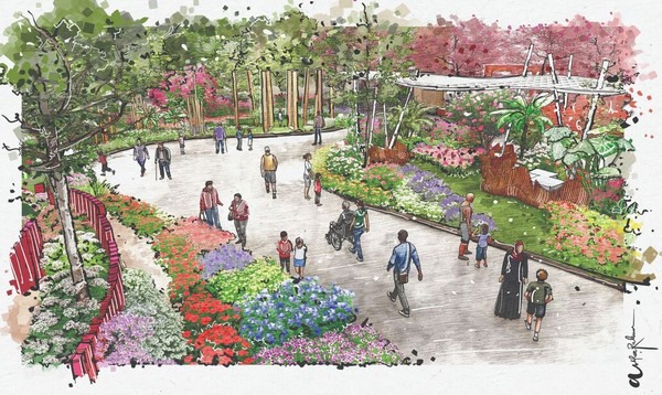 The 2023 Flower Show has taken the most beloved aspects of the past two outdoor Shows and incorporated festival-style elements into the indoor event for the first time. This integration of outdoor elements into the indoor format creates a familiar yet fresh approach to experiential activities for guests to enjoy, in addition to the stunning floral and garden exhibits. The artistic renderings offer a sneak peek of the 2023 Flower Show’s activities and design.