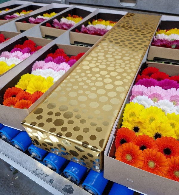 "Especially since the ornamental industry found itself in quite the rough waters this year, we thought this would be worth the celebration," says grower Dirk-Jan Oudijk. "That's why this morning, we put the 50 millionth Gerbera, along with a nice (and tasty) surprise for the paying customer on transport."