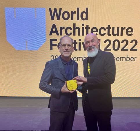 “We are absolutely honored to receive this award. It is a recognition of our design for Europe’s largest Rooftop greenhouse. The innovative building is an example for future food production in the city, intensive use of space and circular energy and water use with sustainable greenhouse horticulture.” Jago van Bergen | director at van Bergen Kolpa Architects
