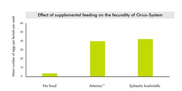 In further trials measuring egg laying, Orius females fed with standard commercial Artemac produced the same number of eggs as those fed with Ephestia (Figure 2).