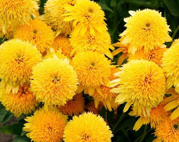 A pom-style echinacea, this plant has the renaissance breeding we like: longer lifespan, better winter performance, big flower count, strong stems, and stubborn disease resistance, all underneath the bright yellow color.