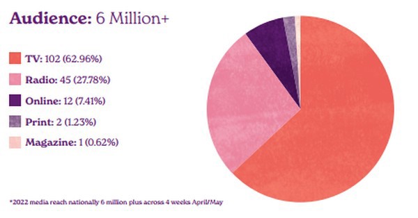 *2022 media reach nationally 6 million plus across four weeks April/May
