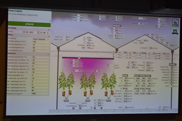 The real closing word was for Roel. He briefly took the audience digitally into the greenhouse. The greenhouses the students work in are linked to Kassim, an online simulation tool for climate control. The students learn what turning the knobs can do to the crop and climate in the greenhouse without immediately being punished for a mistake. For the two greenhouse compartments in the World Horti Center, the students are not allowed to control the climate computer themselves.