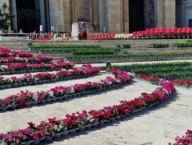 Last weekend, Cyclamen from Schoneveld Breeding in Wilp, the Netherlands, were shining in Vatican City. Young people from churches all over the world came together with Pope Francis to pray during the Taizé-celebration. The celebration was part of the larger TOGETHER-event. It was brightened up with beautiful plants, including 4.500 Super Serie Cyclamen from Schoneveld Breeding. Placed on the stairs of the St. Peters Basilica, they added extra ambiance during the prayer.