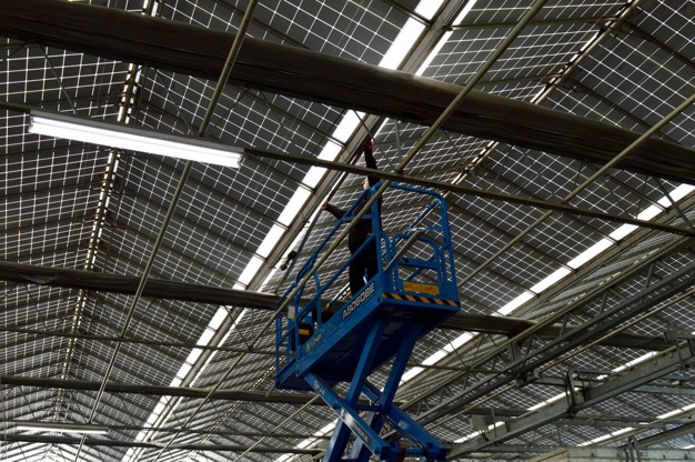 The polycarbonate plates on the barn were in need of replacement, says Peet, and because of the desire and need felt to make the business more sustainable, further consideration was given to more than simply new plates. "I got in touch with TST, and it turned out to be quite possible to fit solar panels integrated into glass, which also fitted into the existing rebates. That made the investment interesting. We hope to produce 400,000 kWh on an annual basis soon."