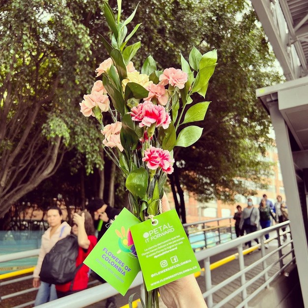 This initiative, in which the Flowers of Colombia were the protagonists, allowed the delivery of 1,000 bouquets to citizens who passed through Virrey Park in Bogotá and around the Museum of Modern Art of MedellĂn, where they had the support of the Foundation Andecol.